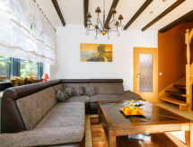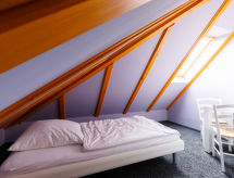 Referenz-Nr.6-Zimmer-Haus 165 m2 auf 3 Stockwerken, im Erdgeschoss. Schön und gemütlich eingerichtet: Wohn-/Esszimmer mit Schwedenofen und Kabel-TV (Flachbildschirm), Radio. 1 Zimmer mit 2 Betten. Offene Küche (Backofen, Geschirrspüler, 4 Glaskeramikplatten, Toaster, Wasserkocher, Mikrowelle, elektrische Kaffeemaschine) mit Esstisch. Dusche/WC. Unteres Geschoss: Wohn-/Esszimmer. 1 Zimmer mit 1 Doppelbett und Dusche/WC. Obergeschoss: 1 Zimmer mit 1 Doppelbett und Bad/WC. 1 Zimmer mit 1 Doppelbett. Terrasse. Terrassenmöbel. Zur Verfügung: Waschmaschine (extra). Wäschetrockner (extra), Kinderhochstuhl, Babybett, Holz (extra). Bitte beachten: Nichtraucher-Unterkunft. Maximal 1 Haustier/Hund erlaubt. Rauchmelder.